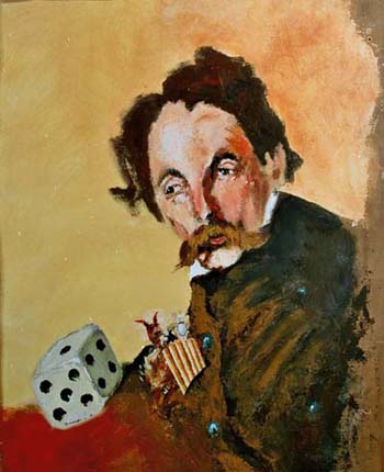 The dice is there to remind us of one of his most beautiful verse: "Jamais un coup de dé n'abolira le hasard". ("never a throw of dice shall abolish chance") |